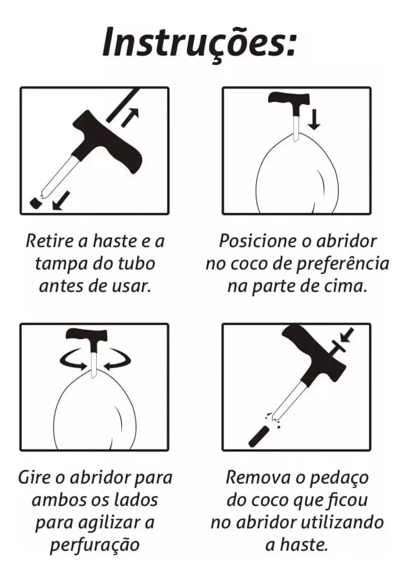 Após Furar O Coco, Utilize A Haste Para Retirar O Miolo Do Furador;