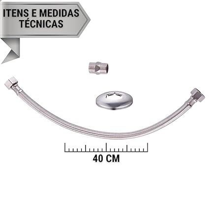 - Flexibilidade e Praticidade: Com 40 cm de comprimento, esta mangueira de engate flexível permite uma instalação fácil e ajustável, perfeita para diversos sistemas hidráulicos.